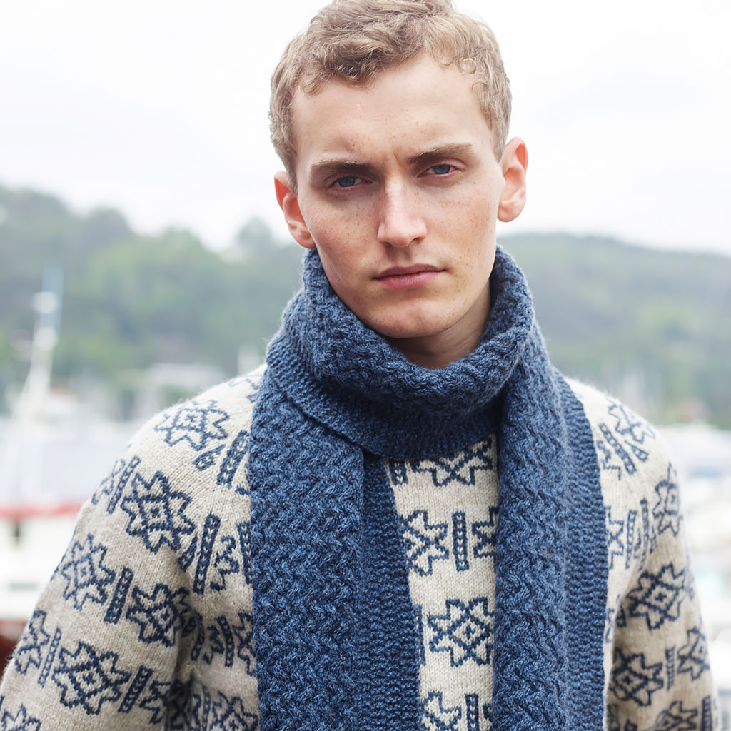 312-12 Førstereisskjerf – flätstickad halsduk i Rauma Finull