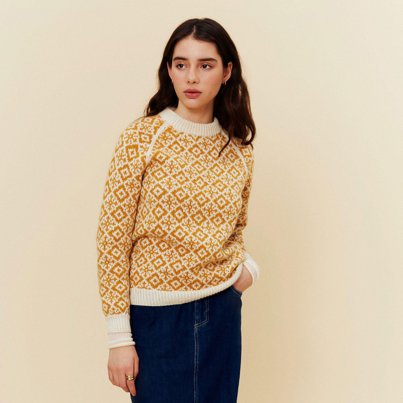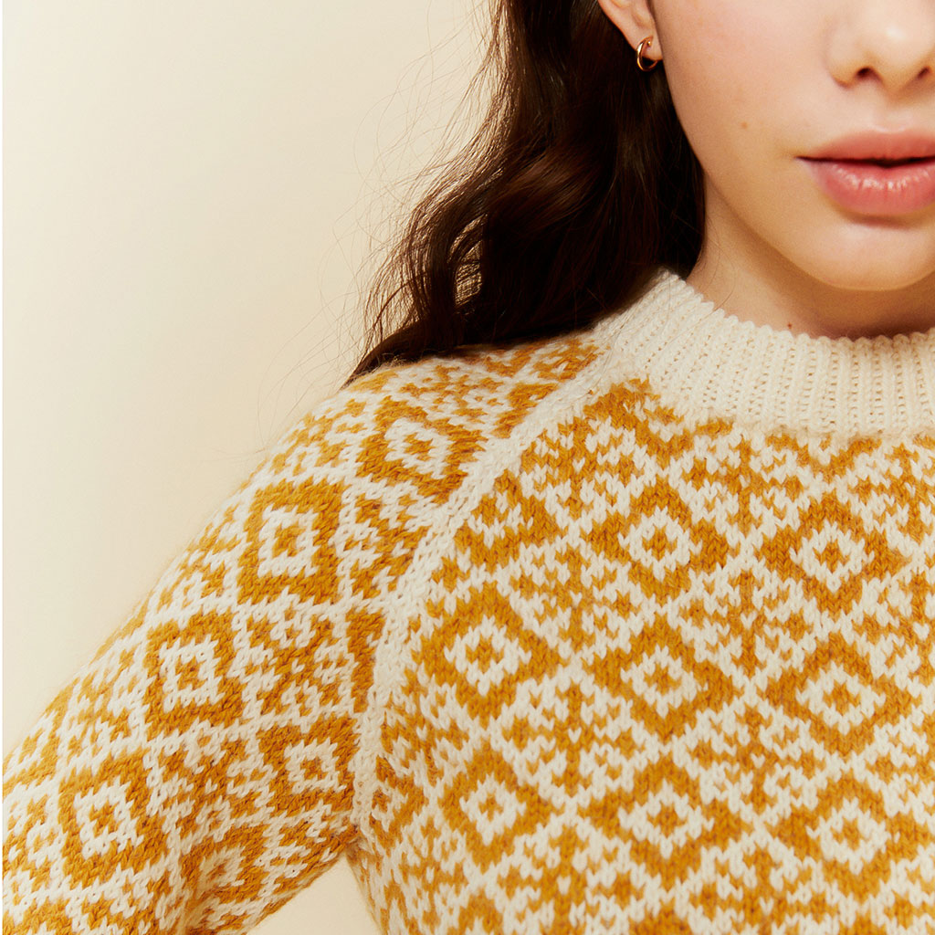 En elegant, mönsterstickad tröja med modern passform och traditionell känsla. Stickas i Tumi – ett mjukt och slitstarkt garn i ull och alpacka – eller i Finull för ett luftigare, rustikt uttryck. Välj Tumi för extra mjukhet, eller Finull om du vill ha en tröja i 100% ull. Perfekt till både vardag och utflykt – en tidlös favorit du kommer att bära ofta.