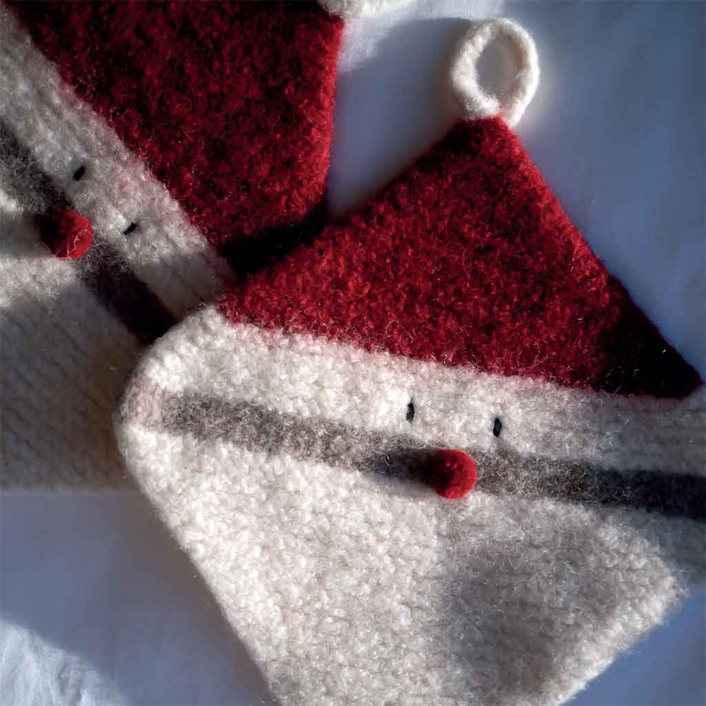 Tovade tomtegrytlappar som stickas med dubbelt garn i Natural Lanolin Wool – ett rustikt och slitstarkt ullgarn med naturligt lanolin som ger både smidighet och fantastiskt tovningsresultat. Perfekta grytlappar som blir tjocka, varma och värmetåliga efter tovning.
